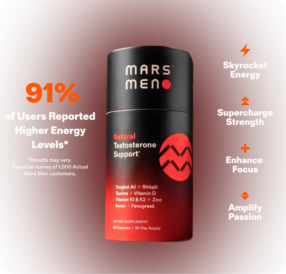 Mars Men is for men over the age of 18 looking to support their testosterone in a safe, natural, and effective way.